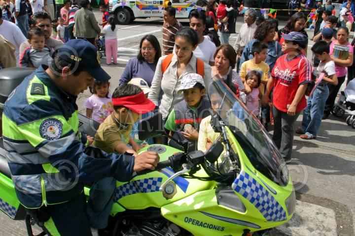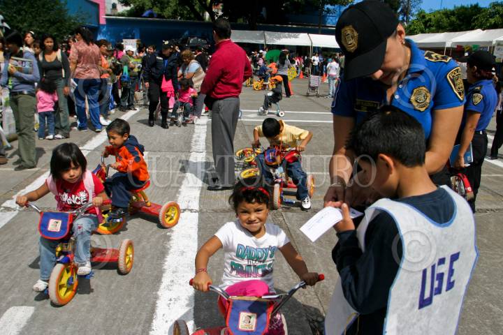 MÉXICO, D.F., 05AGOSTO2010.- Elementos de la policía de transito, mostraron a niños, las principales normas de transito que se deben seguir a la hora de conducir, donde también de manera simbólica, realizarón algunas multas a niños que cometieron alguna infracción como parte de las actividades que realizó la Secretaria de Seguridad Publica en la delegación Álvaro Obregón en torno a la educación vial, con la finalidad de evitar futuros accidentes. FOTO: ENRIQUE ORDÓÑEZ/CUARTOSCURO.COM