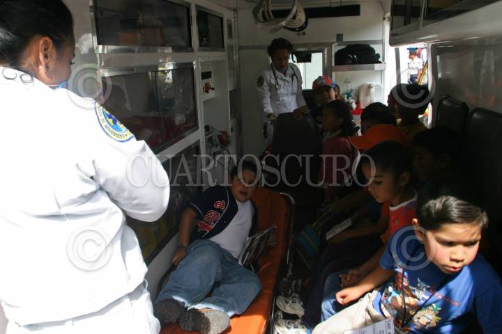 MÉXICO, D.F., 05AGOSTO2010.- Elementos del ERUM, dierón un curso básico de primeros auxilios como parte de las actividades que realizó la Secretaria de Seguridad Publica en la delegación Álvaro Obregón en torno a la educación vial, con la finalidad de evitar futuros accidentes. FOTO: ENRIQUE ORDÓÑEZ/CUARTOSCURO.COM