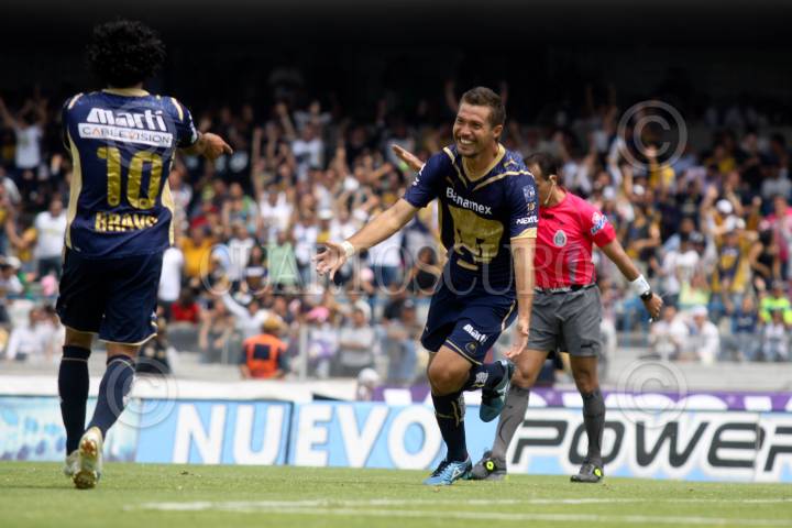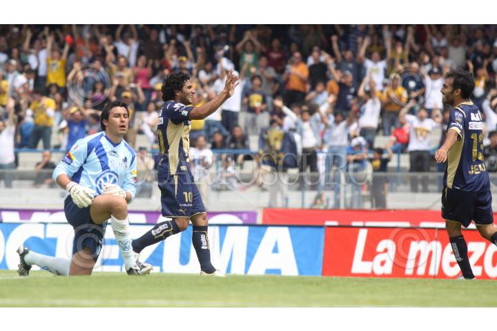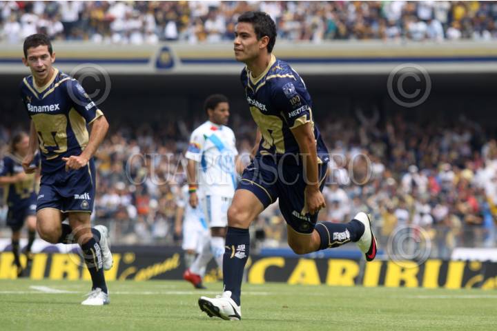 MÉXICO, D.F., 07MARZO2010.- Pablo Barrera celebró su anotación de gol ante el equipo de Puebla donde el equipo de los pumas consiguió su tercera victoria en casa; anotando cuatro goles y sumado 16 puntos en la fecha 9 del Torneo Bicentenario. FOTO: SÁSHENKA GUTIÉRREZ/CUARTOSCURO.COM