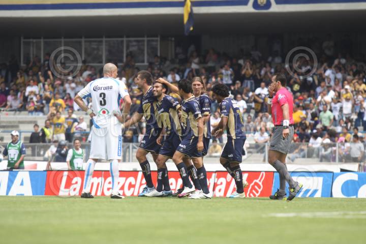 MÉXICO, D.F., 07MARZO2010.- Jugadores de los Pumas celebran su anotación de gol ante el equipo de Puebla donde el equipo de los pumas consiguió su tercera victoria en casa; anotando cuatro goles y sumado 16 puntos en la fecha 9 del Torneo Bicentenario. FOTO: SÁSHENKA GUTIÉRREZ/CUARTOSCURO.COM