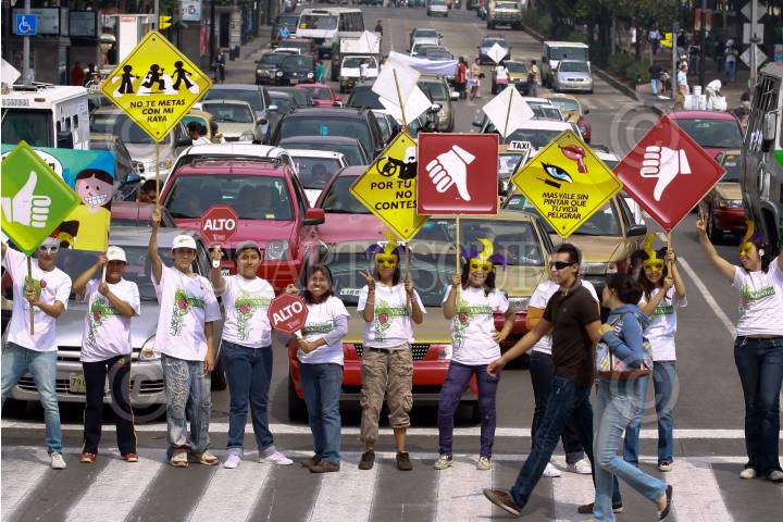 MÉXICO D.F., 18JULIO2009.- El Instituto Nacional de la Juventud puso en marcha esta mañana el programa del respeto al peatón que consiste en hacer consciencia a los automovilistas respetar las señales viales, así como los paseos peatonales. FOTO: SÁSHENKA GUTIÉRREZ/CUARTOSCURO.COM