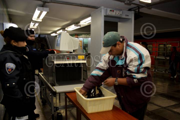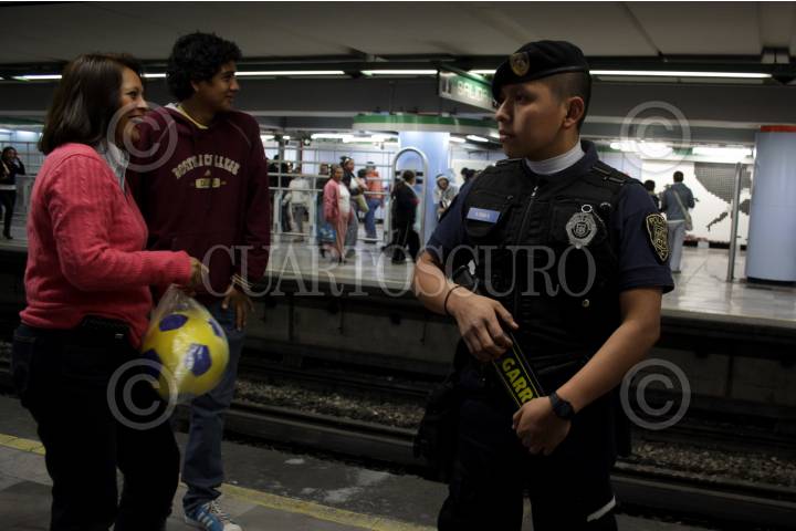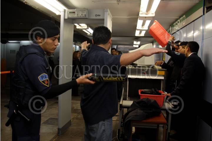 MÉXICO, D.F., 22DICIEMBRE2009.- Fue puesto en marcha un programa piloto de seguridad en el metro, que consiste en la minisiosa revision de pasajeros , para evitar que aborten al trasporte con armas de fuego o navajas. FOTO: SÁSHENKA GUTIÉRREZ/CUARTOSCURO.COM
