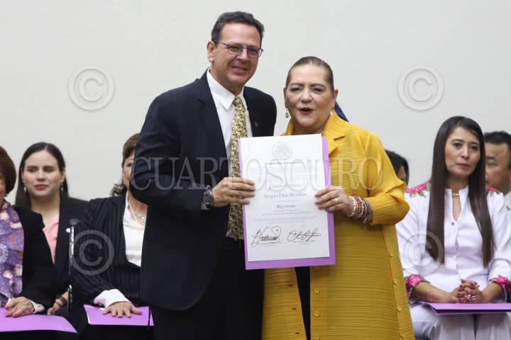 CIUDAD DE MÉXICO, 16JUNIO2025.-Roselia Bustillo Marín recibió su constancia como magistrada regional del Tribunal Electoral del Poder Judicial de Veracruz. FOTO: DANIEL AUGUSTO/ CUARTOSCURO.COM