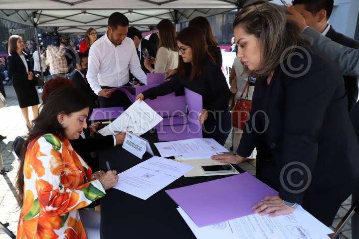 CIUDAD DE MÉXICO, 31AGOSTO2025.- El INE convivo a sesión extraordinaria para la firma y entrega de constancias a Magistradas y Magistrados de Circuito de los Tribunales Colegiados de Circuito y Juezas y Jueces de Distrito. FOTO: CORTESÍA INE/CUARTOSCURO.COM