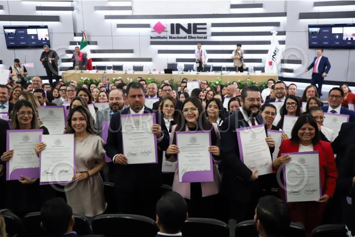 CIUDAD DE MÉXICO, 03JULIO2025.- El INE entregó este jueves las constancias de mayoría a los jueces y magistrados que salieron victoriosos en las urnas durante las pasadas elecciones judiciales. FOTO: DANIEL AUGUSTO/ CUARTOSCURO.COM