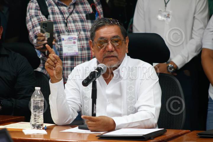 CHILPANCINGO, GUERRERO, 09JUNIO2024.- El Instituto Nacional Electoral (INE) entregó, en manos del Vocal Ejecutivo de Guerrero, Donaciano Muños Loyola, la constancia de mayoría a la fórmula de Morena al Senado de la República, Beatriz Mojica Morga y Félix Salgado Macedonio que los acredita como Senadores electos. En su mensaje Beatriz Mojica Morga se asumió como la primera mujer senadora afromexicana y agradeció el apoyo a los guerrerenses por votar también a favor de Claudia Sheinbaum Pardo. En su mensaje Félix Salgado Macedonio calificó el trabajo del INE el proceso electoral 2023-2024 como "impecable" pero aseveró que gastan mucho dinero en la impresión de boletas electorales y el día de la jornada electoral las filas en las casillas son muy largas. La gobernadora del estado, Evelyn Salgado Pineda, asistió de manera sorpresiva a la entrega de constancias para felicitar a su padre. FOTO: DASSAEV TÉLLEZ ADAME/CUARTOSCURO.COM