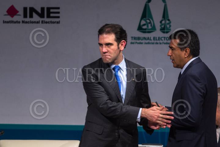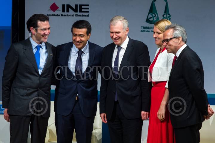 MÉXICO, D.F., 03SEPTIEMBRE2015.- Lorenzo Córdova consejero presidente del INE junto a Constancio Carrasco Magistrado Presidente del TEPJF durante la “Conferencia global sobre financiamiento político”, FOTO: ENRIQUE ORDÓÑEZ /CUARTOSCURO.COM