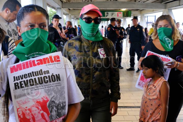 CIUDAD DE MÉXICO, 13AGOSTO2019.- Integrantes de la organización "Libres y Combativas" realizaron el mitin "Basta de violencia en el transporte público", en el que exigieron la depuración de cuerpos policíacos de todos los rangos, la investigación a los presuntos violadores en los casos de Azcapotzalco y Museo Archivo de la Fotografía, así como mayor seguridad, alumbrado, la destitución de Gustavo Omar Jiménez Escudero, fiscal Central de Investigación, y de María Concepción Prado García, fiscal Central de Investigación para la rencion de delitos sexuales y la aplicación de la Ley General de Acceso a las Mujeres a una Vida Libre de Violencia desde todas las instancias del gobierno a nivel nacional. La manifestación se realizó en el paradero del metro Constitución de 1917 de la línea 8, alcaldía Iztapalapa. FOTO: GRACIELA LÓPEZ /CUARTOSCURO.COM