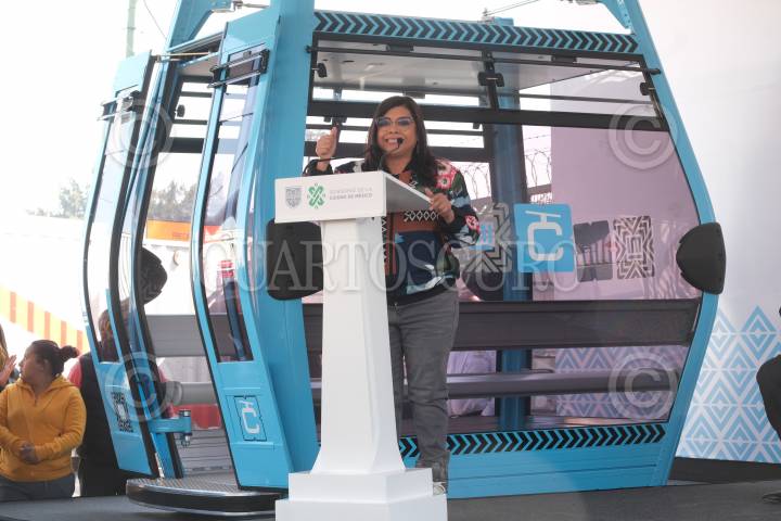 Clara Brugada, alcaldesa de Iztapalapa, durante la presentación del arranque de obra del Cablebús Línea 2.
