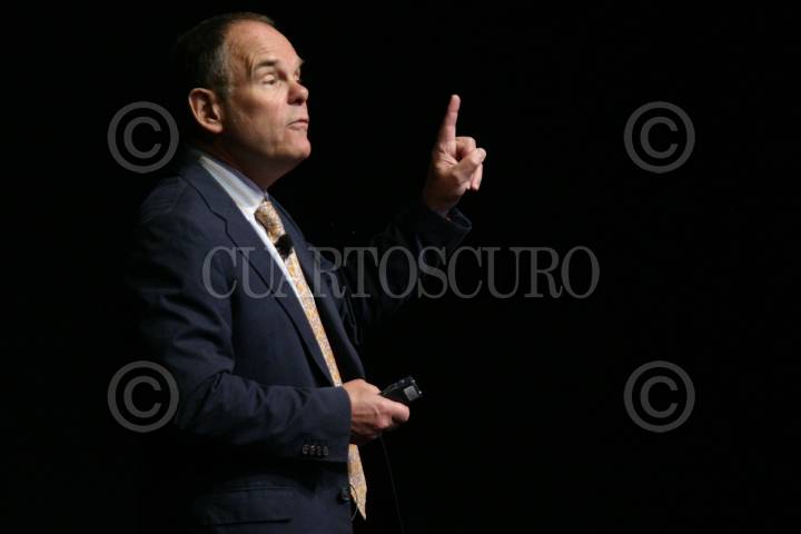 MÉXICO, D.F., 12JUNIO2008.- El consultor Don Tapscott durante su participacion en el Foro Económico Latinoamericano "ExpoManagement" que se realiza en el Centro Banamex. FOTO: RODOLFO ANGULO/CUARTOSCURO.COM
