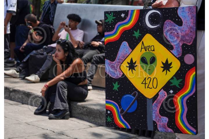 CIUDAD DE MÉXICO, 20ABRILO2025.- En el marco por el "Día Mundial de la Marihuana" distintos colectivos realizaron el "Festival 4:20 Nacional 2025" en el Ángel de la Independencia. Los colectivos demandan trato digno, posesión y cultivo libre, así colo espacios compartidos en igualdad para consumidores de cannabis. FOTO: MAGDALENA MONTIEL/CUARTOSCURO.COM