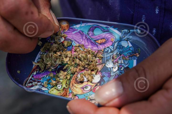 CIUDAD DE MÉXICO, 20ABRILO2025.- En el marco por el "Día Mundial de la Marihuana" distintos colectivos realizaron el "Festival 4:20 Nacional 2025" en el Ángel de la Independencia. En la imagen, una persona limpia marihuana el procedimiento consiste en eliminar ramas y cocos. FOTO: MAGDALENA MONTIEL/CUARTOSCURO.COM