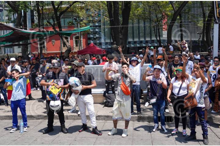 CIUDAD DE MÉXICO, 05AGOSTO2025.- Vecinos del Centro bloquearon Eje Central, a la altura de la calle Belisario Domínguez, para manifestar su inconformidad por la posible instalación de un punto de tolerancia para consumidores de cannabis en la Plaza de la Conchita. Esta medida fue anunciada ayer por el secretario de Gobierno de la Ciudad de México, luego del retiro de los puntos ubicados en avenida Juárez y metro Hidalgo. Los inconformes rechazaron que los jóvenes consumidores se instalen en esa zona, ya que, argumentaron, hay varias escuelas de educación básica en los alrededores y no quieren ese ejemplo para sus hijos. Además, señalaron que la explanada de la plaza es un espacio de esparcimiento para los vecinos. Elementos de la policía dialogaron con los manifestantes y acordaron el retiro del bloqueo a cambio de mantener una patrulla en el sitio, que informara a los jóvenes que llegaban que ese lugar no sería habilitado como punto de tolerancia. Por momentos, hubo confrontaciones verbales entre vecinos y consumidores. FOTO: MOISÉS PABLO/CUARTOSCURO.COM