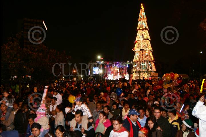 MÉXICO, D.F., 23NOVIEMBRE2008.- Cientos de personas asistieron a la avenida Paseo de la Reforma, donde fue encendido el Árbol de Navidad que se encuentre frente a la entrada de los leones del Bosque de Chapultepec. FOTO: ISAAC ESQUIVEL/CUARTOSCURO.COM