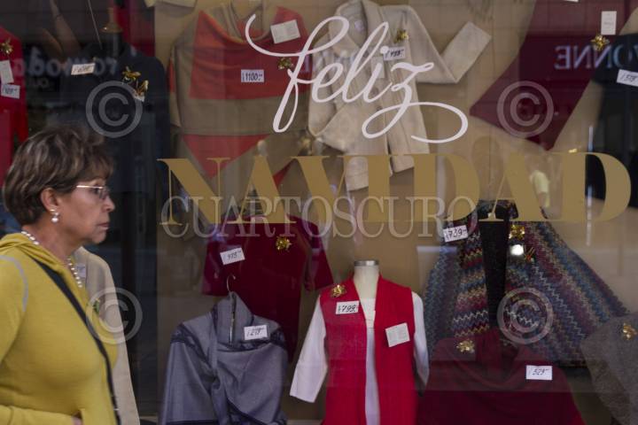 CIUDAD DE MÉXICO, 22DICIEMBRE2016.- Invitación consumista navideña de un aparador comercial. FOTO: MOISÉS PABLO /CUARTOSCURO.COM