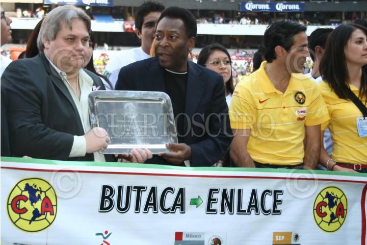 MÉXICO, D.,F 26OCTUBRE2008.- El clásico mexicano contó con la presencia de la estrella del futbol, el brasileño Edson Arantes do Nascimento "Pelé". FOTO: SÁSHENKA GUTIÉRREZ/CUATOSCURO.COM