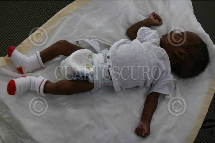 PUERTO PRÍNCIPE, HAITI, 29ENERO2010.- Un bebé duerme en una improvisada cama en el Hospìtal General de Puerto Príncipe, donde se comenzaron a detectar algunas enfermedades contagiosas como sarampión y diarrea. FOTO: ISAAC ESQUIVEL/CUARTOSCURO.COM
