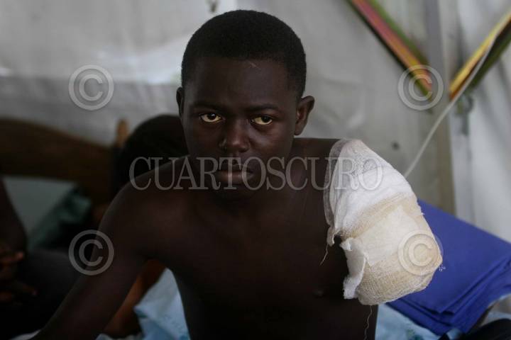 PUERTO PRÍNCIPE, HAITI, 29ENERO2010.- Decenas de enfermos y heridos esperan ser atendidos en el Hospital General de Puerto Príncipe, donde se comenzaron a detectar algunas enfermedades contagiosas como sarampión y diarrea. FOTO: ISAAC ESQUIVEL/CUARTOSCURO.COM