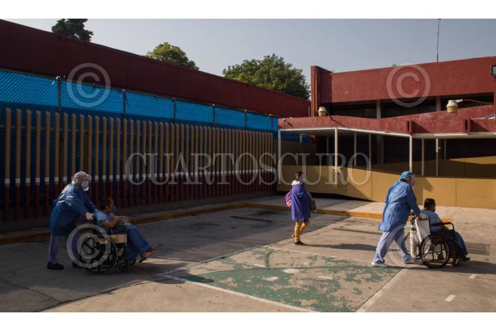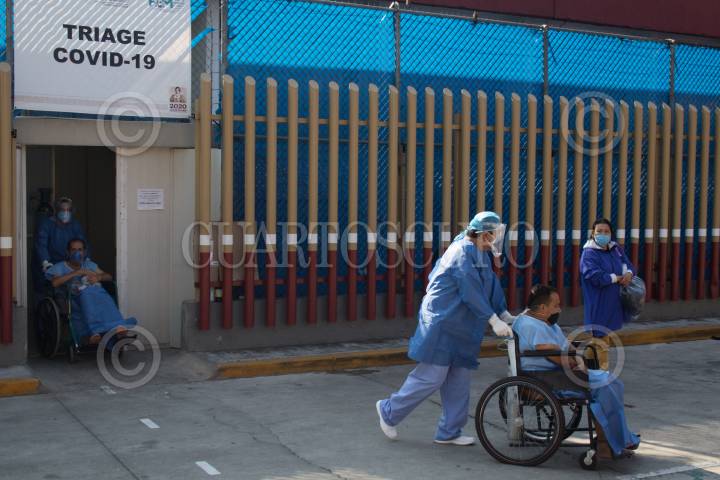 Dos pacientes son trasladados del cubículo de Triage Covid-19 al interior del hospital en donde continuarán en tratamiento