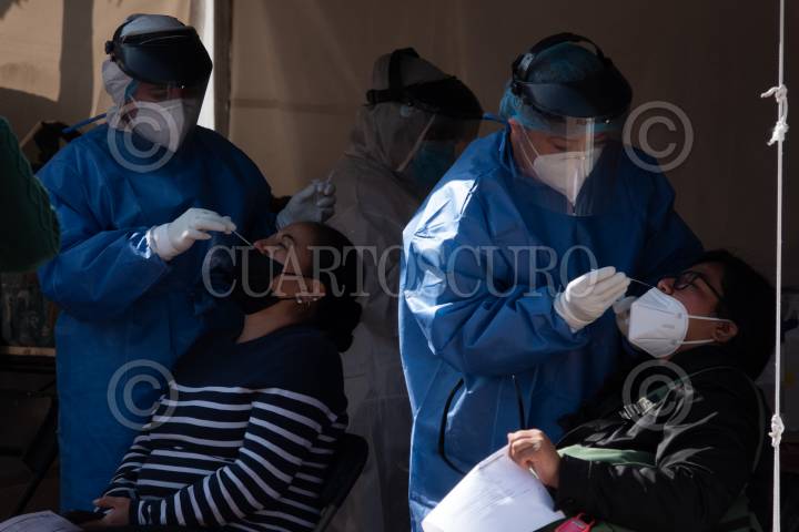 Aplicación de pruebas en el kiosco Covid-19 en la alcaldía Cuauhtémoc tras el aumento de contagios en población infanti y de 18 a 39 años.