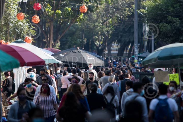 Decenas de capitalinos transitaron por la calle de Génova utilizando en su mayoría el cubrebocas para evitar contagios de Ómicron, la nueva variante de Covid-19