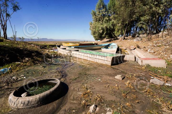 CUITZEO, MICHOACÁN. 21FEBRERO2024. Una de las principales fuentes económicas de la región era la pesca, llegaban a capturar hasta cinco mil toneladas al año de algunos productos, como charal. La parte poniente del embalse se encuentra totalmente sin agua, sólo se observa como si acabaran de regar la tierra salina donde ahora hay pequeños brotes de pasto. La parte oriente, cercana a Cuitzeo, tomando de referencia el puente de acceso a esta población, también ha perdido el agua que superó un metro de altura hasta hace unos cincos años. En el lago sólo queda agua en la parte de los municipios de San Ana Maya, Álvaro Obregón y una pequeña franja de Cuitzeo, en la ribera de la comunidad de San Agustín del Pulque. FOTO: JUAN JOSÉ ESTRADA SERAFÍN /CUARTOSCURO.COM