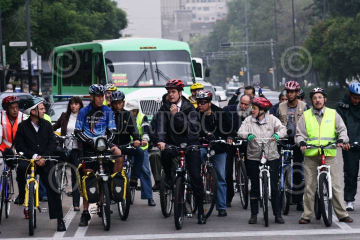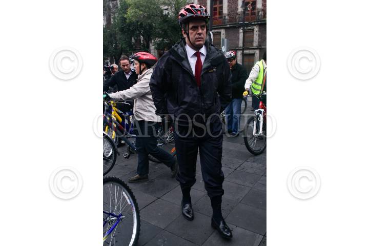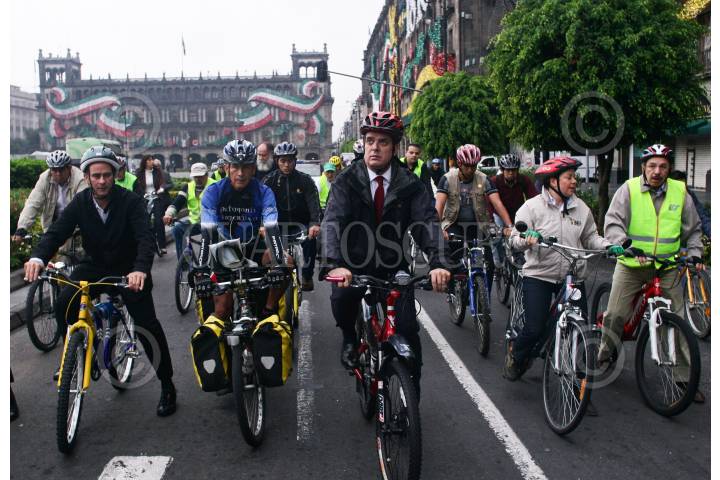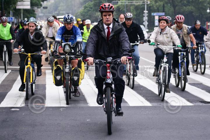 MÉXICO, D.F., 07SEPTIEMBRE2009.- Marcelo Ebrard, jefe de Gobierno del Distrito Federal, utilizó la bicicleta para llegar a sus actividades como cada primer lunes de mes. FOTO: ISAAC ESQUIVEL/CUARTOSCURO.COM