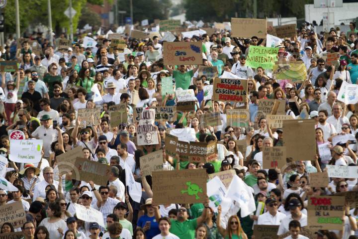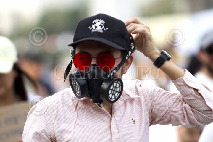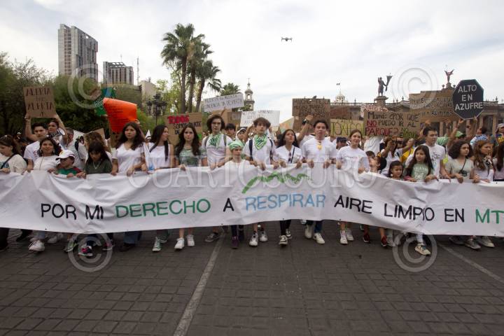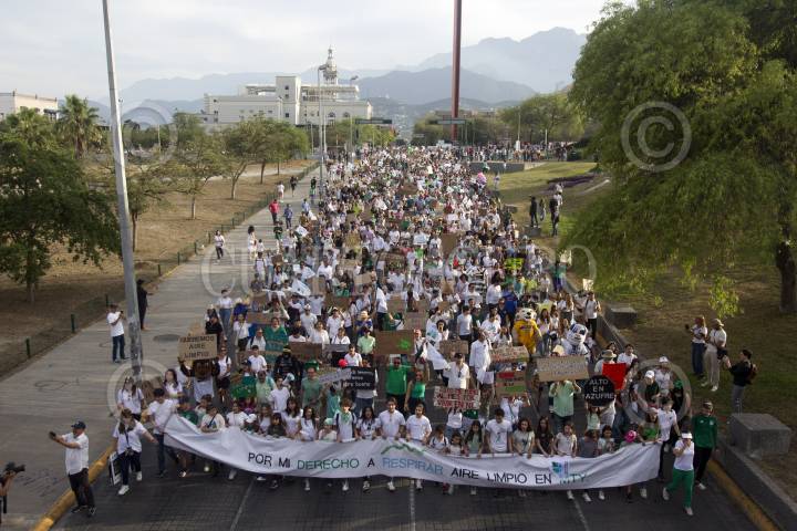 Integrantes del movimiento "Yo respiro Monterrey" y del Comité Ecológico Interescolar, organizaron una marcha en el centro de la ciudad para exigir acciones y mejorar el aire en la zona metropolitana de Monterrey, así como buscar soluciones para dar prioridad al transporte público.