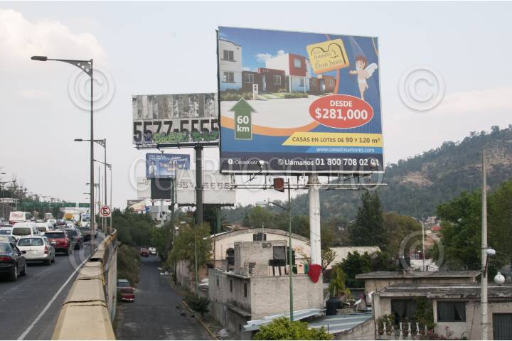 MÉXICO, D.F., 02ENERO2015.- Bombardeo de anuncios espectaculares sobre la Autopista México Pachuca, los cuales están instalados en casas de la colonia Santa Isabela Tola, delegación Gustavo A. Madero. Se estima que en la Ciudad de México hay unos 10 mil anuncios espectaculares de los cuales más de la mitad, están fuera de la ley según las autoridades capitalinas. FOTO: DIEGO SIMÓN SÁNCHEZ /CUARTOSCURO.COM
