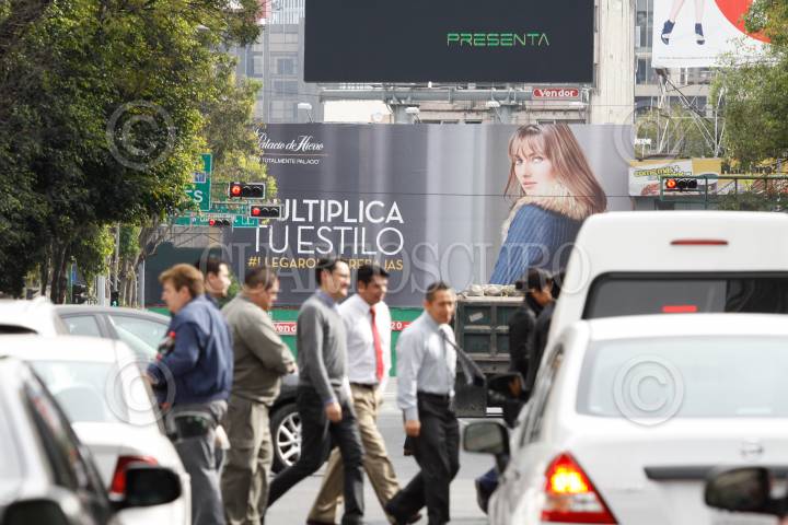 MÉXICO, D.F., 08ENERO2015.- Sobre avenida Sevilla en la delegación Cuauhtémoc se observan grandes carteles publicitarias. Las grandes ciudades como el Distrito Federal padecen de la llamada contaminación visual, la cual se define como todo aquello que altere visualmente la imagen y fisonomía de un contexto urbano, es decir, toda forma de interferencia que pueda generar un mensaje visual o su estructura que impida ver, distorsione o desdibuje la visión de otros mensajes o de cualquier componente del entorno. FOTO: MOISÉS PABLO /CUARTOSCURO.COM