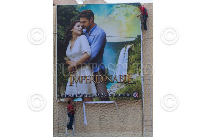 MÉXICO, D.F., 18ABRIL2015.- Trabajadores de Televisa Chapultepec actualizan la cartelera de las nuevas novelas de esta televisora, la imagen sobre avenida Chapultepec. FOTO: MOISÉS PABLO /CUARTOSCURO.COM