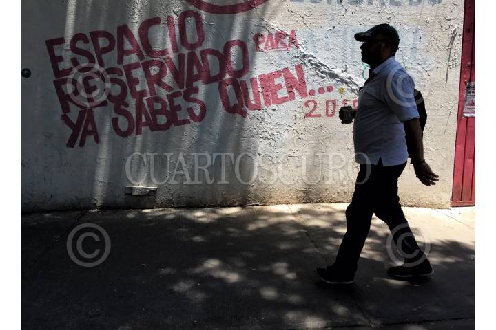 CIUDAD DE MÉXICO, 26MAYO2018.- Un hombre camina por las calles de la condesa, dónde se pueden apreciar varias paredes intervenidas con publicidad de Andrés Manuel Lopez Obrador, candidato a la presidencia de la República por la coalición “Juntos haremos historia”. FOTO: ANDREA MURCIA /CUARTOSCURO.COM