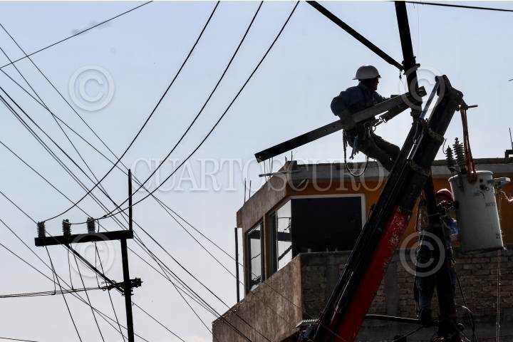 Trabajadores eléctricos realizan cambio de cableado en la ciudad. FOTO: ROGELIO MORALES /CUARTOSCURO.COM