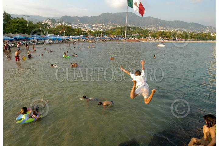 ACAPULCO, GUERRERO, 09NOVIEMBRE2009.- Unos niños disfrutan de las playas del Parque Papagayo una de las que se encuentran contaminadas por enterococos fecales y ocasionada por la falta de funcionamiento de las plantas de tratamiento de aguas residuales, las descargas clandestinas de aguas negras, el fileteo de pescado de la pesca artesanal y el arrastre de desechos por las lluvias mediante los canales pluviales. FOTOS: BERNANDINO HERNANDEZ/CUARTOSCURO.COM