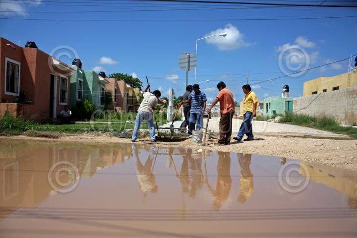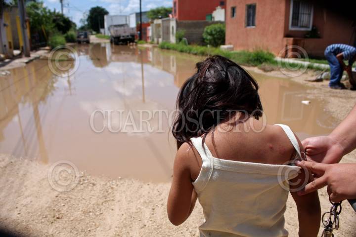 KANASIN, YUCATÁN, 04AGOSTO2010.- Los enormes baches llenos de agua sucia que se encuentran en las calles de Kanasin han provocado severas infecciones y enfermedades de piel en los menores que viven a los alrededores; incluso los camiones de transporte urbano se niegan a pasar por las calles en mal estado; el ayuntamiento de Kanasin comienza a trabajar en la pavimentación de calles pero no se hace responsable de los ciudadanos afectados por bacterias a causa de los baches. FOTO: FRANCISCO BALDERAS/CUARTOSCURO.COM