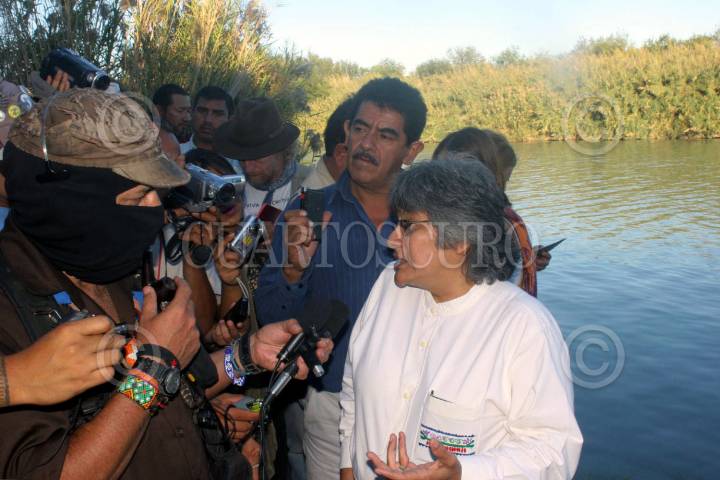 NUEVO LAREDO, TAMAULIPAS. 21 NOVIEMBRE 2006. El Subcomandante Marcos, Delegado Zero de La Otra Campaña del EZLN en las orillas del Rio Bravo frontera natural que divide a México de Estados Unidos y que esta siendo contaminado por empresas extranjeras que desechan productos tóxicos en sus aguas. FOTO: MOYSÉS ZÚÑIGA/CUARTOSCURO.COM