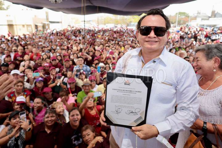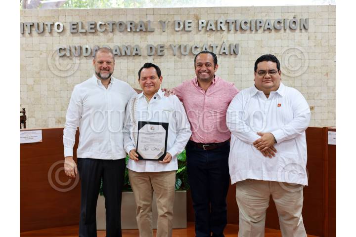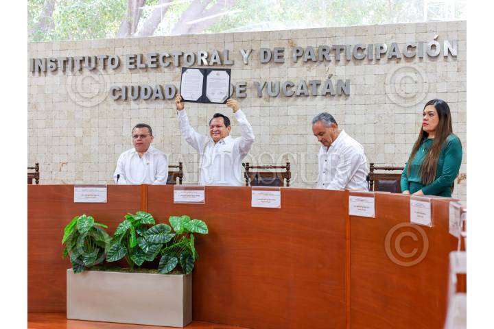 MÉRIDA, YUCATÁN, 09JUNIO2024.- Joaquín Díaz Mena recibió esta tarde, en las instalaciones del IEPAC, su acta de mayoría como gobernador electo del estado de Yucatán. El "Huacho" obtuvo una histórica votación sin precedentes en el estado con 628,845 sufragios convirtiéndolo en el próximo gobernador de Yucatán. FOTO: CUARTOSCURO.COM