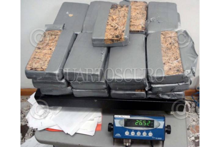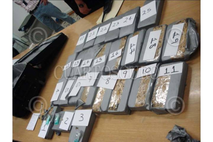 MÉXICO, D.F., 25FEBRERO2008. Elementos de la Policía Federal identificaron y aseguraron una maleta que contenía más de 26 kilogramos de cocaína procedentes de Lima, Perú, vía Bogotá, en el Aeropuerto Internacional de la Ciudad de México, “Benito Juárez”. FOTO: SSPF/CUARTOSCURO.COM