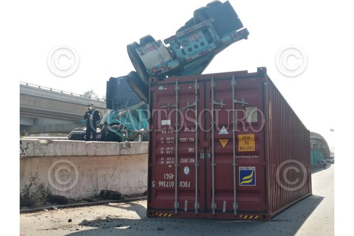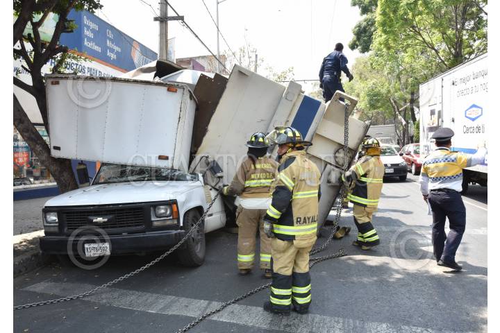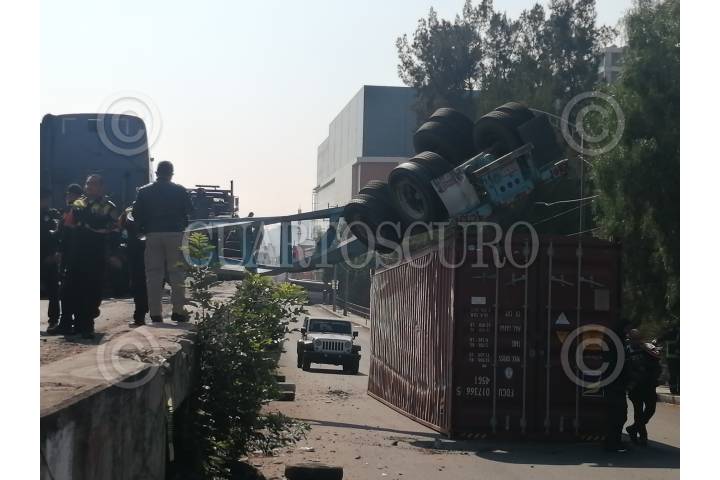 Volcadura de un contenedor que era trasladado en un tráiler mientras circulaba sobre Río de los remedios en la alcaldía de Gustavo a Madero de colonia Siete Maravillas.
