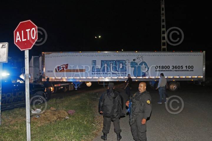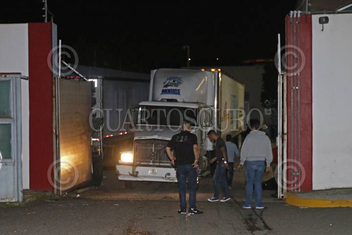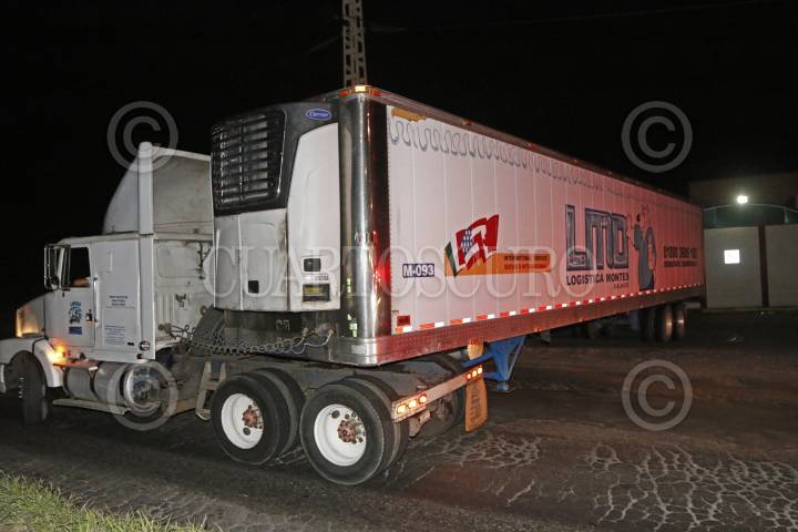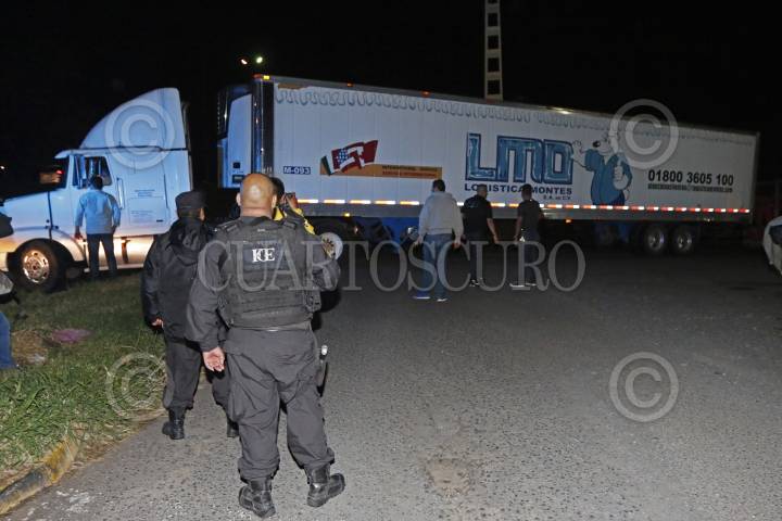 TLAQUEPAQUE, JALISCO, 17SEPTIEMBRE2018.- Policías federales y del estado custodian un trailer de servicios de refrigeración con mas de 150 cadáveres a bordo del contenedor, el cual ingresa a las instalaciones del Instituto Jalisciense de Ciencias Forenses (IJCF) y mismo que fue abandonado en la periferia de la metrópoli el fin de semana pasado. FOTO: FERNANDO CARRANZA GARCIA / CUARTOSCURO.COM