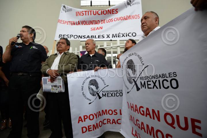 TOLUCA, ESTADO DE MÉXICO, 07JUNIO2017.- Integrantes de la Asociación "Responsables X México" se manifestaron en las inmediaciones del Instituto Electoral del Estado de México (IEEM), para exigir que se respete la decisión de la ciudadanía durante las elecciones a gobernador del Estado de México. FOTO: ARTEMIO GUERRA BAZ / CUARTOSCURO.COM