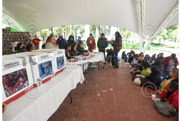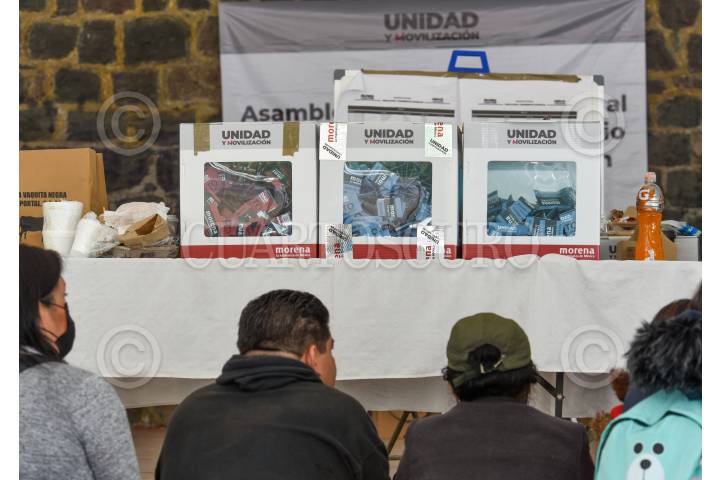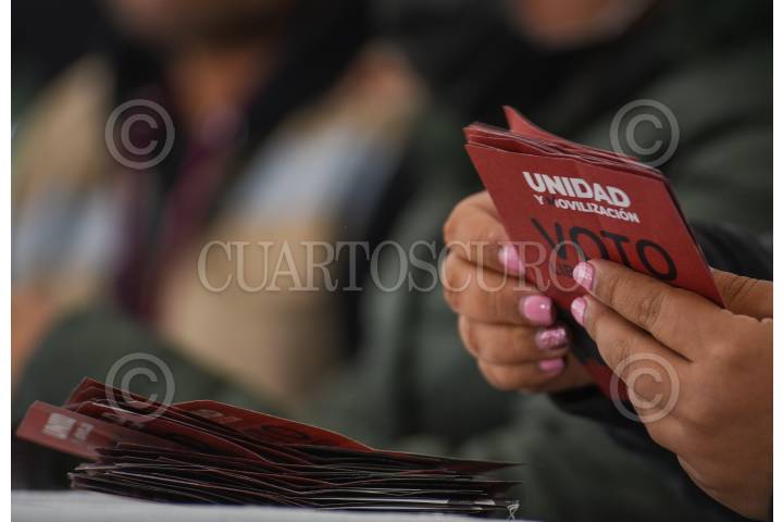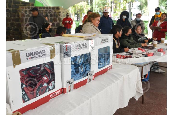 Conteo de votos en Toluca en la casilla ubicada en el Parque Cuauhtémoc Alameda Central después de llevarse a cabo este domingo la elección de delegados rumbo al Congreso Nacional de MORENA.
