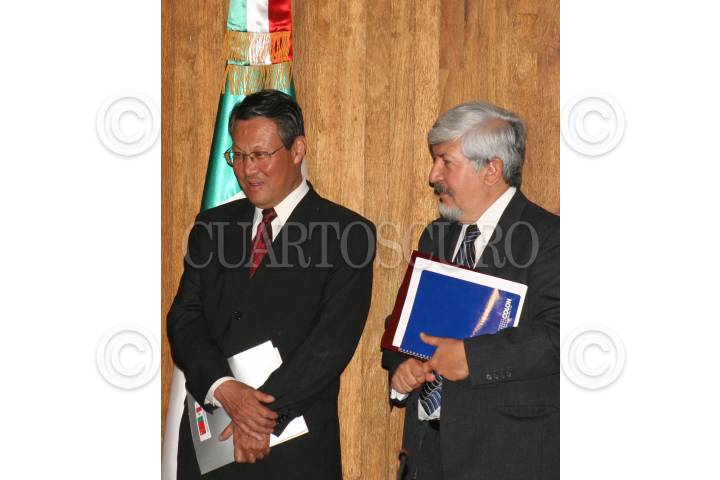 MEXICO D.F. 06MARZO2006.- Ren Jingyu, Embajador de la República Popular China en México junto con Osvaldo Rosales, de Comercio Internacional e Integración de la CEPAL, durante el Foro de Oportunidades en la Relación Económica y Comercial entre China y México y su Contexto Latinoamericano en la Secretaria de Relaciones Exteriores. FOTO: Diego Gallegos/CUARTOSCURO.COM