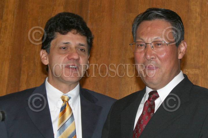 MEXICO D.F. 06MARZO2006.- Jorge Máffar, de la sede Subregional de la CEPAL en México junto con Ren Jingyu, Embajador de la República Popular CHina en México, durante el Foro de Oportunidades en la Relación Económica y Comercial entre China y México y su Contexto Latinoamericano en la Secretaria de Relaciones Exteriores. FOTO: Diego Gallegos/CUARTOSCURO.COM