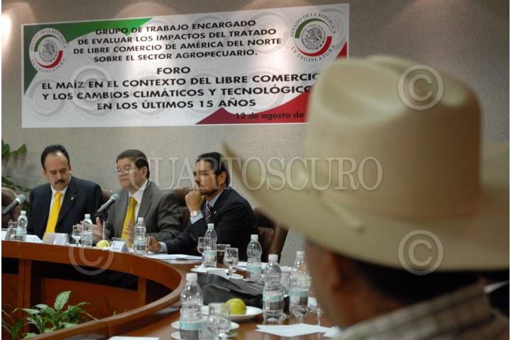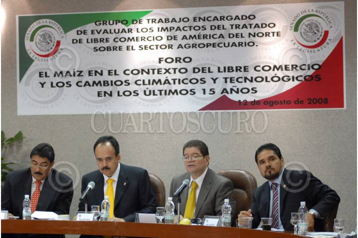 MÉXICO, D.F., 12AGOSTO2008.- Los Senadores del PRD, Antonio Mejía Haro, Francisco Javier Castellón Fonseca y Silvano Aureoles Conejo, durante su participación en el foro: El Maíz en el Contexto del Libre Comercio y los Cambios Climáticos en los Últimos 15 Años, se pronunciaron por la urgencia de contar con una política de Estado hacia el campo. FOTO: CUARTOSCURO.COM