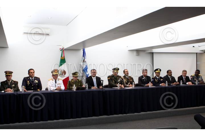 MÉXICO, D.F.,08OCTUBRE2010.- Genaro Garcia Luna, secretario de Seguridad Pública acompañado de Eduardo Gordon Valcárcel, general director de Carabineros de Chile; de Oscar Naranjo Trujillo, director general Policia Nacional de Colombia y secretario ejecutivo de Ameripol y de 19 jefes de la policía de países del continente americano ofrecieron una conferencia de prensa sobre la tercera reunión anual de las policías de América (Ameripol) que se desarrollará en las instalaciones de la Secretaría de Seguridad Pública federal. FOTO: RODOLFO ANGULO/CUARTOSCURO.COM