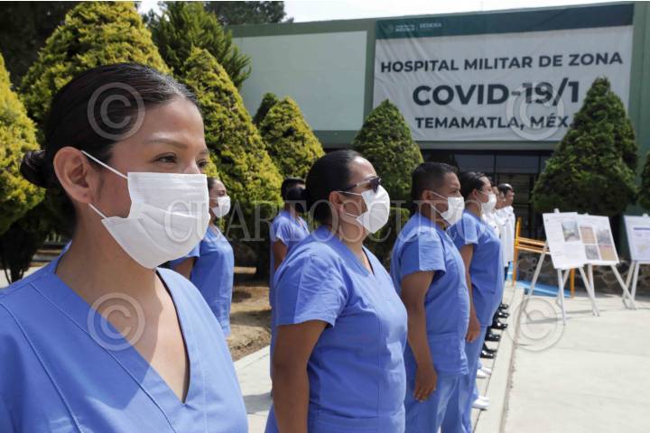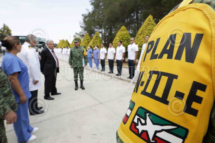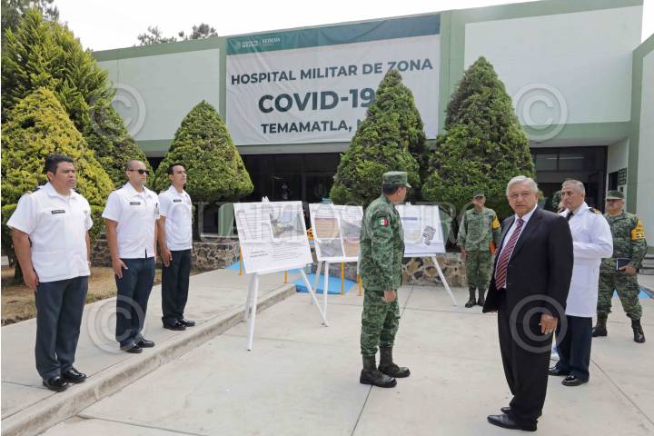 Andrés Manuel López Obrador, Presidente de México, durante la supervisión de la Infraestructura Hospitalaria SEDENA – INSABI, Campo Militar 37-B.