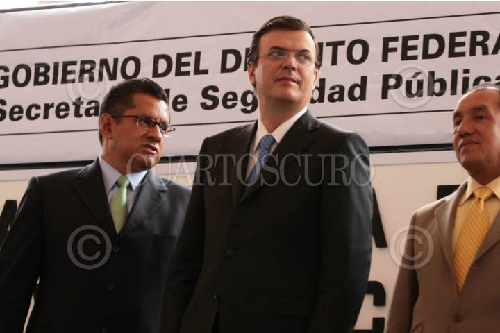 MÉXICO, D.F.27ABRIL2007.- El jefe de gobierno capitalino, Marcelo Ebrard y el titular de Seguridad Pública, Joel Ortega; durante la "Campaña contral el juguete bélico, sin violencia es mejor vivir", organizada por el GDF y la SSP del Distrito Federal. FOTO JEFTÉ ARGUELLO/CUARTOSCURO.COM