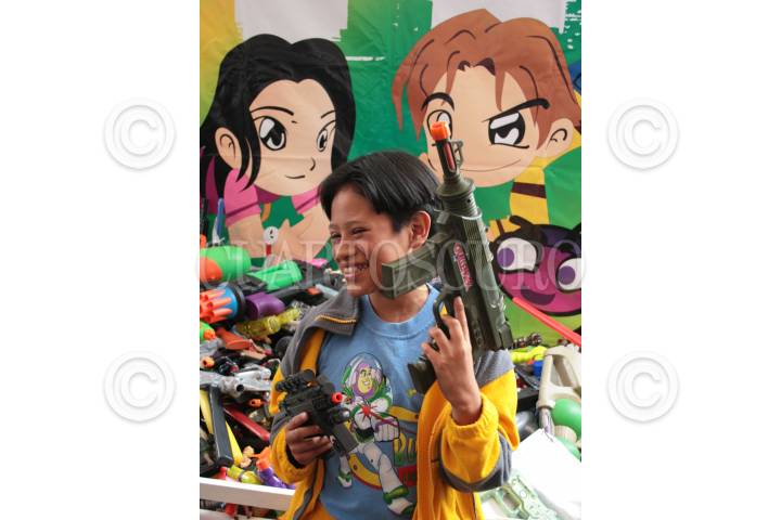 MÉXICO, D.F.27ABRIL2007.- Un niño muestea uno de los juguetes bélicos que intercambío por un juguete didactico durante la "Campaña contral el juguete bélico, sin violencia es mejor vivir", organizada por el GDF y la SSP del Distrito Federal. FOTO JEFTÉ ARGUELLO/CUARTOSCURO.COM