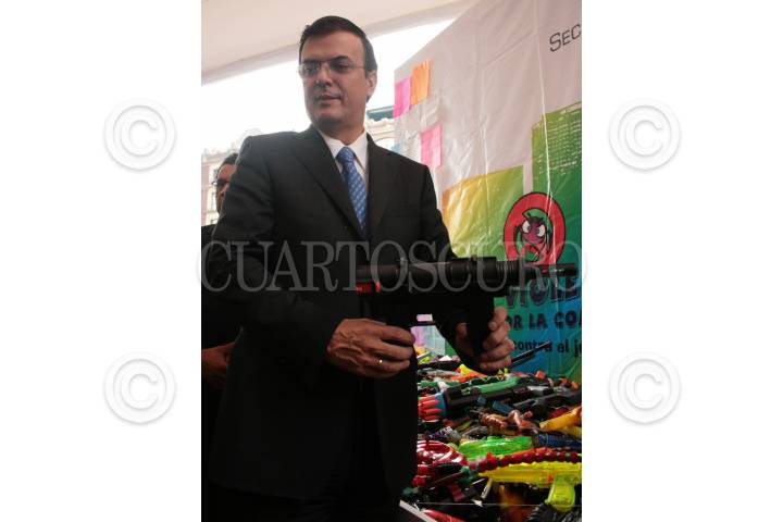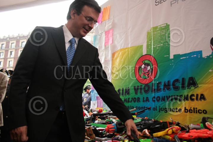 MÉXICO, D.F.27ABRIL2007.- El jefe de gobierno capitalino, Marcelo Ebrard, durante la "Campaña contral el juguete bélico, sin violencia es mejor vivir", organizada por el GDF y la SSP del Distrito Federal. FOTO JEFTÉ ARGUELLO/CUARTOSCURO.COM